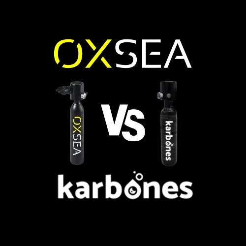 Découvrez les différences entre Karbones et Oxsea, deux marques de mini bouteilles de plongée. Karbones, une marque française, offre une large gamme de bouteilles en aluminium et en carbone, avec des autonomies allant jusqu’à 10 et 12 minutes. Oxsea, une marque chinoise, propose des bouteilles en aluminium avec des autonomies plus limitées.